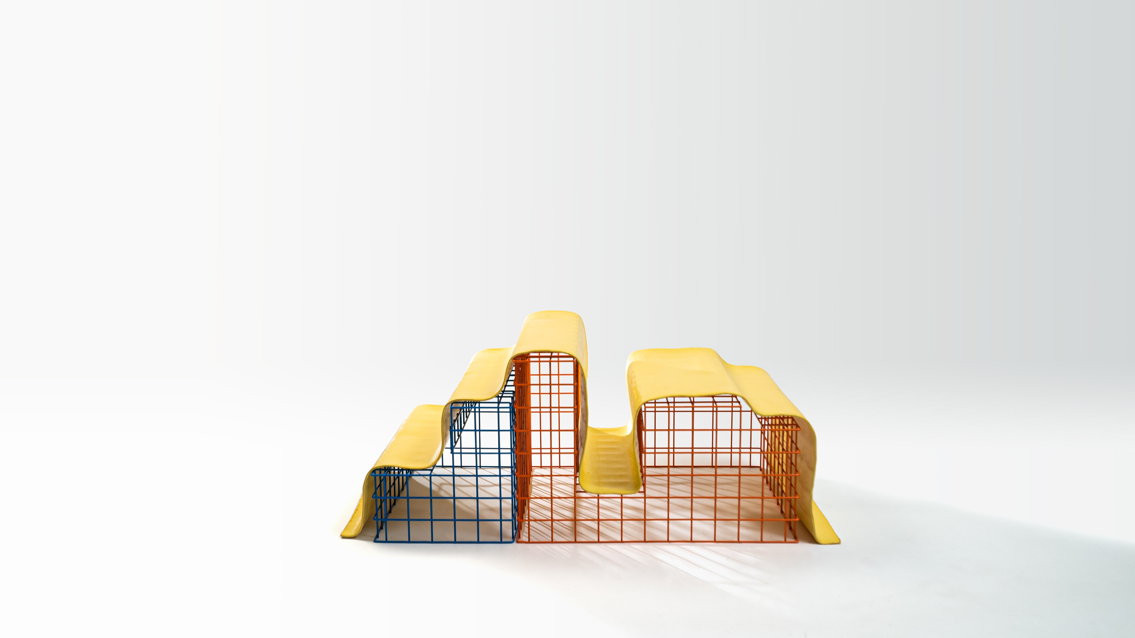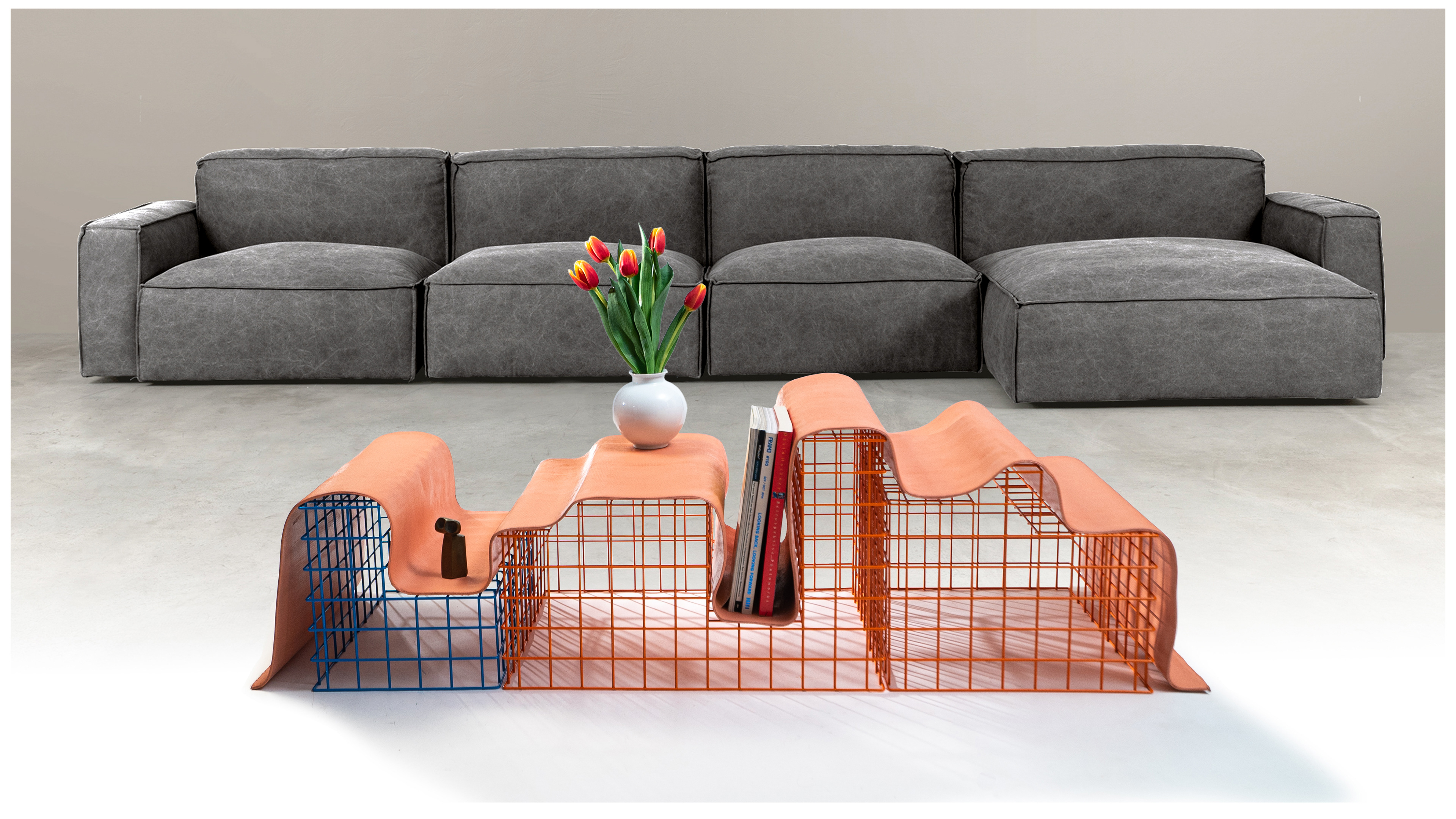 A modular coffee table, born as a contrast between the geometric rigor of his modules (realized with metal welded net) and the soft sinuosity of the surface (in concrete canvas) laying on them as a veil. The product, thanks to the design of three different components, makes of modularity, ductility and imagination its main characteristics.Thought as a coffe table (40x145x60cm) INO can be stretched, mixed, rearranged with creativity and imagination without losing its essence, in order to fulfill the user necessities and aesthetics needs. The three modules are designed in order to obtain at least six horizontal surfaces of different dimensions to be used and filled with complementary objects of domestic rituals, routine and narratives.