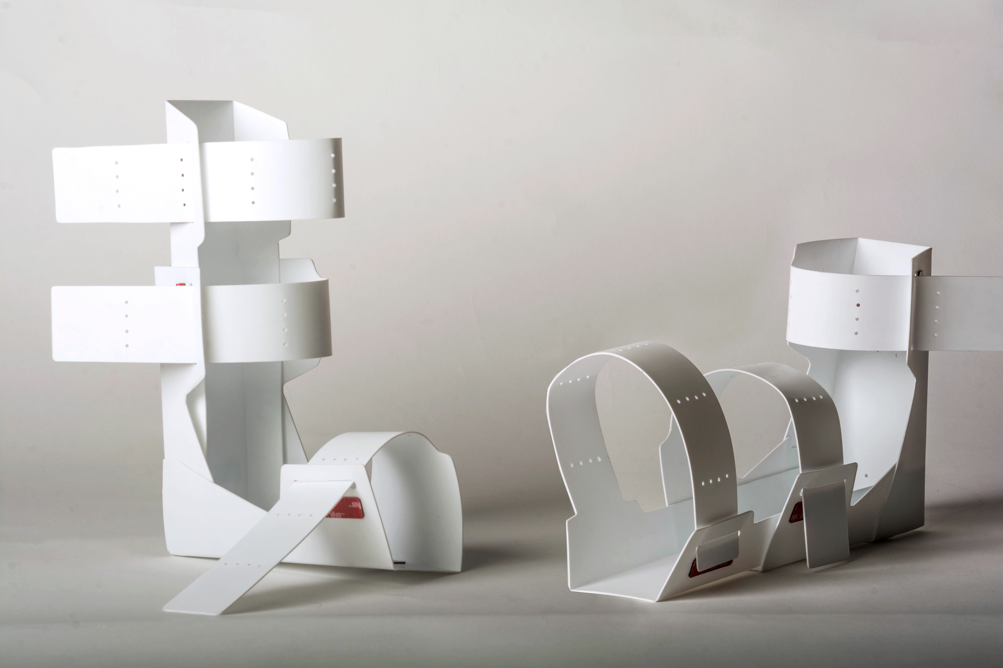 The innovative characteristics are the incredible lightness and the transportability due to the fact that comes as a flat sheet of material You will receive a flat sheet of plastic (HDPS) with the bend directions to follow, so that from a 2D splint we are going to have a 3D one ready to use. In order to let Osteo fit in both legs and arms without having sizes, the average body dimensions has been considered (95 percentile).